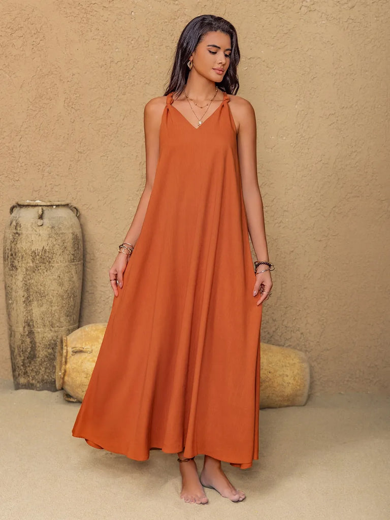 Ruched Twisted Back Sleeveless Maxi Cami Dress